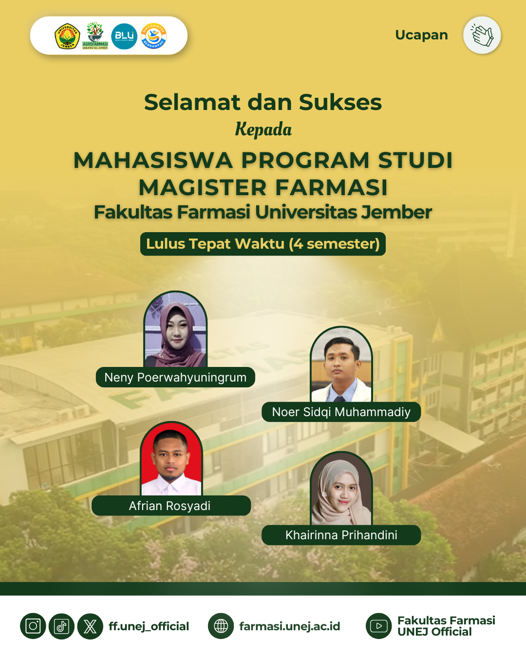 Selamat & Sukses kepada Mahasiswa Program Studi Magister Farmasi by Qusairi | Jul 31, 2025 | Pengumuman