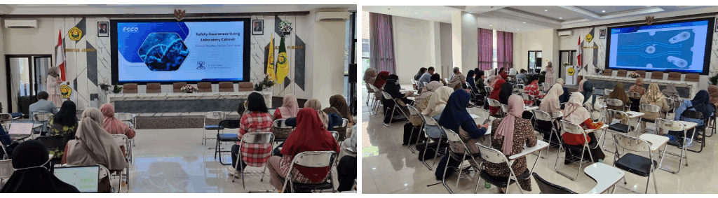 Seminar berlangsung interaktif dan penuh antusiasme. Narasumber dari PT Esco Utama menyampaikan materi dengan jelas, sederhana, dan mudah dipahami, sehingga peserta dapat dengan cepat menyerap pengetahuan yang diberikan. Diskusi yang terbuka juga membuat peserta lebih aktif bertanya serta berbagi pengalaman, sehingga materi yang diperoleh dapat langsung diimplementasikan dalam kegiatan sehari-hari di laboratorium. Dengan cara ini, kesadaran akan pentingnya keselamatan kerja semakin mengakar dalam diri setiap peserta.