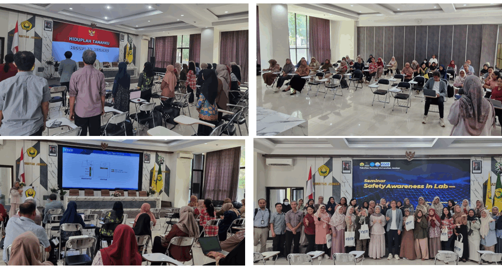 Fakultas Farmasi Universitas Jember menggelar seminar Safety Awareness in Lab di aula fakultas pada Selasa, 30 September 2025. Kegiatan ini diikuti oleh dosen dan tenaga laboratorium, dengan menghadirkan narasumber dari PT Esco Utama. Kehadiran para peserta menunjukkan tingginya kepedulian terhadap pentingnya penerapan keselamatan kerja di laboratorium sebagai bagian dari budaya akademik yang sehat dan produktif.