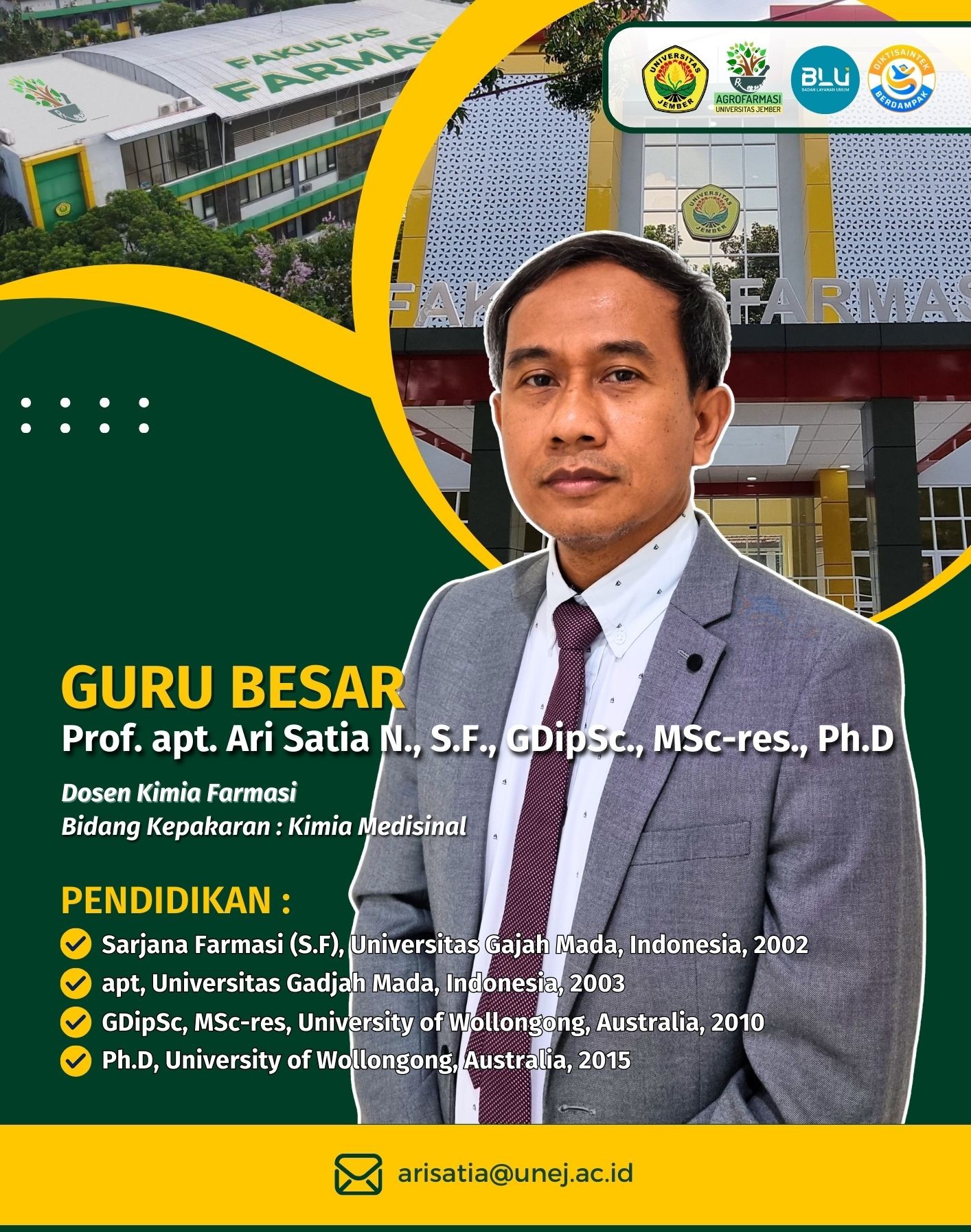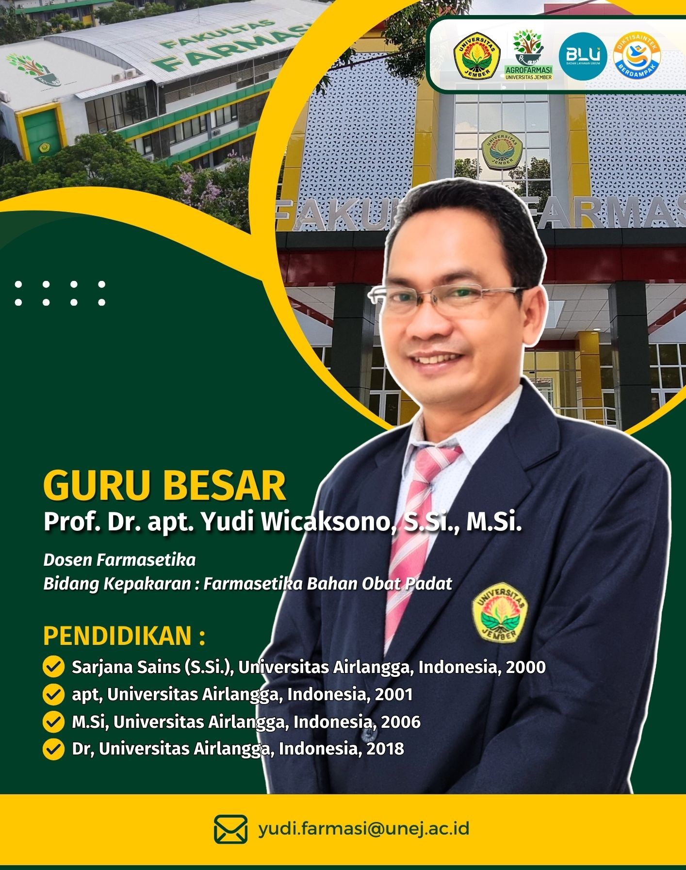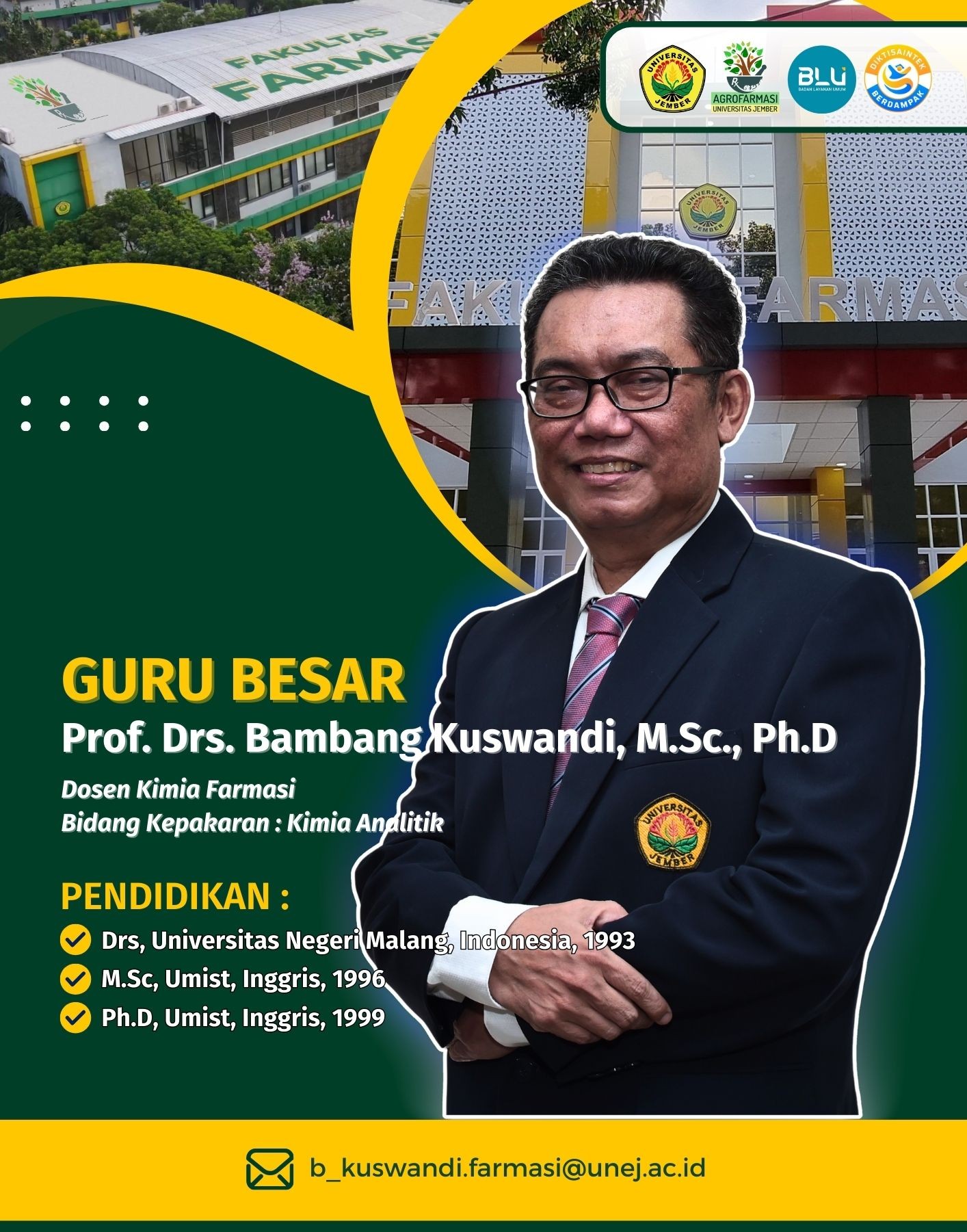 Prof. Drs. Bambang Kuswandi, M.Sc., Ph.D. – Prof. apt. Ari Satia Nugraha, S.F., GDipSc., MSc-res., Ph.D. – Prof. Dr. apt. Yudi Wicaksono, S.Si., M.Si. –